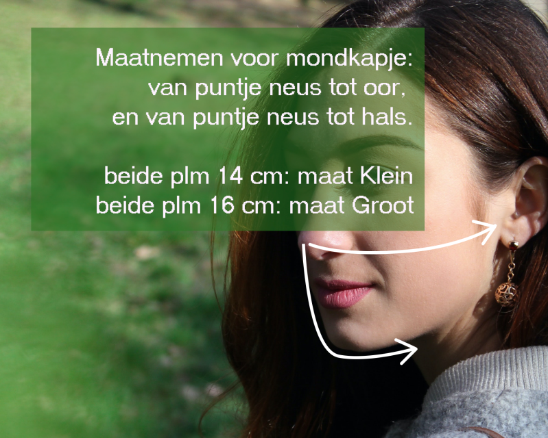 - met anatomisch verstelbare neusbeugel: op maat maken door het van hoog op je neusbrug naar beneden en dan opzij langs je jukbeen te buigen. Zo maak je ook voldoende ruimte onder je ogen, en brillenglazen beslaan niet;
